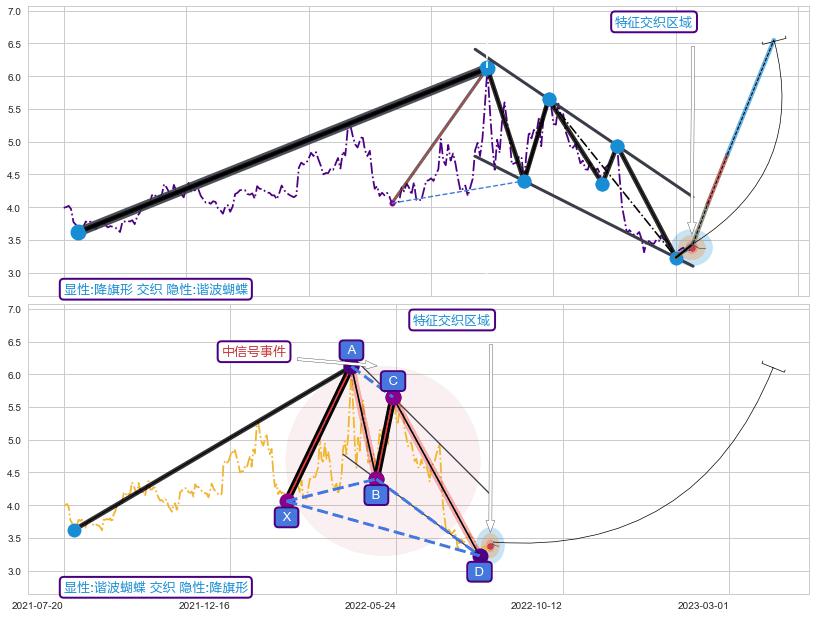 ➢ 谐波蝴蝶属【中级别信号事件】降旗形属【长级别信号事件】中长周期组合信号事件,中长事件长度比46.43%