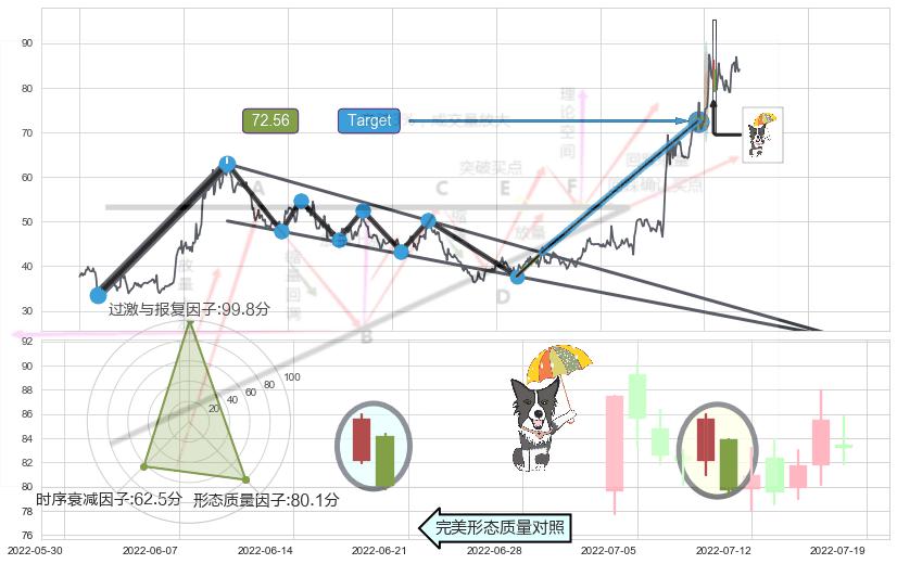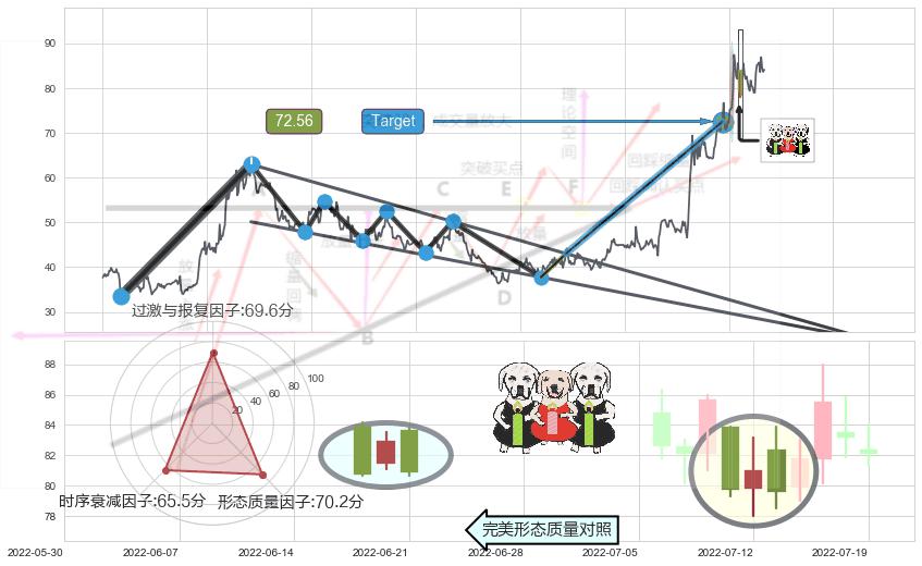 ➢ 🕰 价格走势在2022-07-11至2022-07-13期间形成两黑夹一红,残存影响值:-3.62