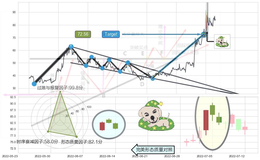 ➣ 【未确认突破,预测即将形成突破】上升三角形整理起点:2022-04-26, 预测突破点:2022-08-16,形态共77交易日
