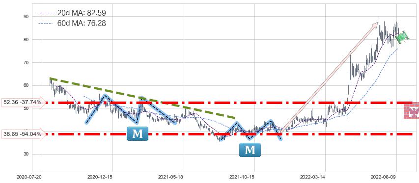 ♞ 20日均线:82.59,60日均线:76.28→ 快线>慢线