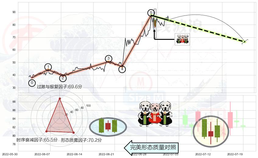 ➢ 🕰 价格走势在2022-07-11至2022-07-13期间形成两黑夹一红,残存影响值:-3.62
