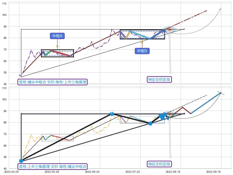 ➢ 缠论中枢点与上升三角整理信号事件周期长度级别相同,同周期信号事件