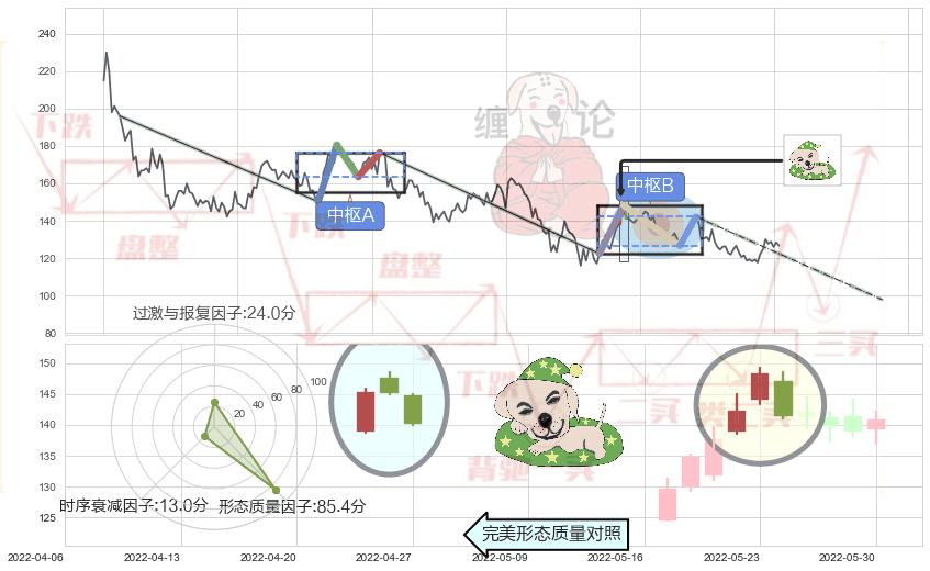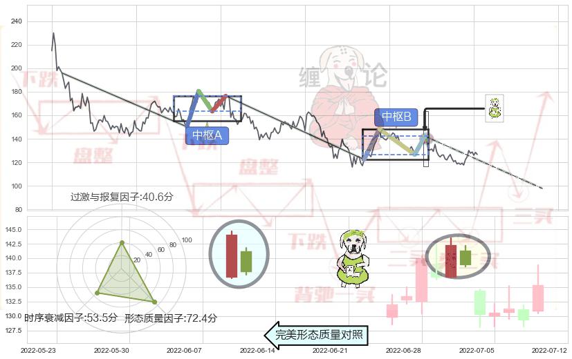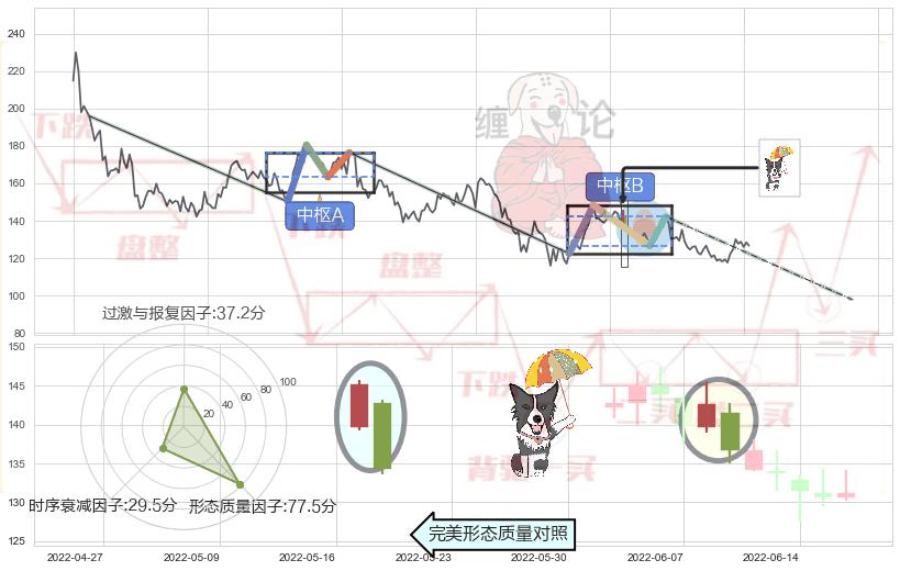 ➢ 下跌身怀六甲 🔜 缠论中枢点破位中枢B支撑下拉 综合量化分数:46.51 【中性】