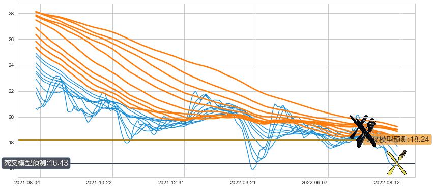 ➣ 60小时均线于(2022-07-13: 18.76)形成【死叉】基于【死叉历史模型】预测死叉后最低波谷价格: 16.78, 死叉后最低价格16.06,已经下跌超出预测最低波谷价格, 预期反弹