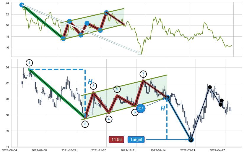 ➢ AI预测: 假定反转如期而至,第❸价格目标位置(2022-10-18, 21.49)