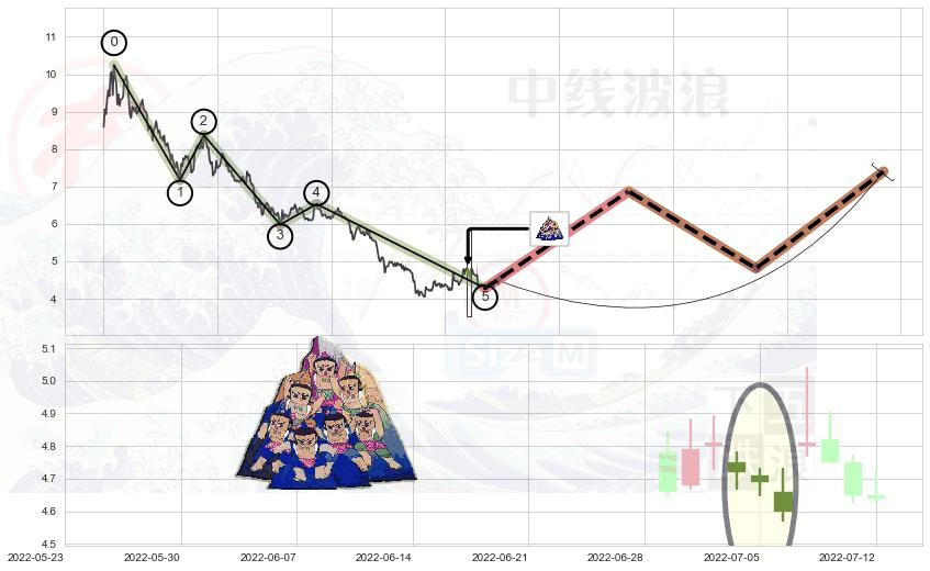 ➣ 波浪理论:猜想止跌 → 上涨 →【拐点】浪5已完成 → 大趋势均值回复