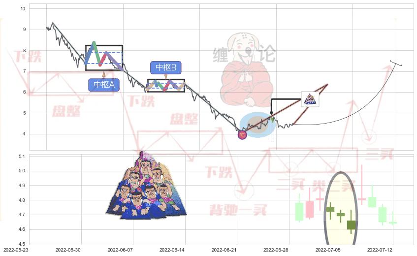 ➣ 收盘价(2022-07-12: 4.64 )→回踩→第一根k线高点(2022-07-06: 4.73 )