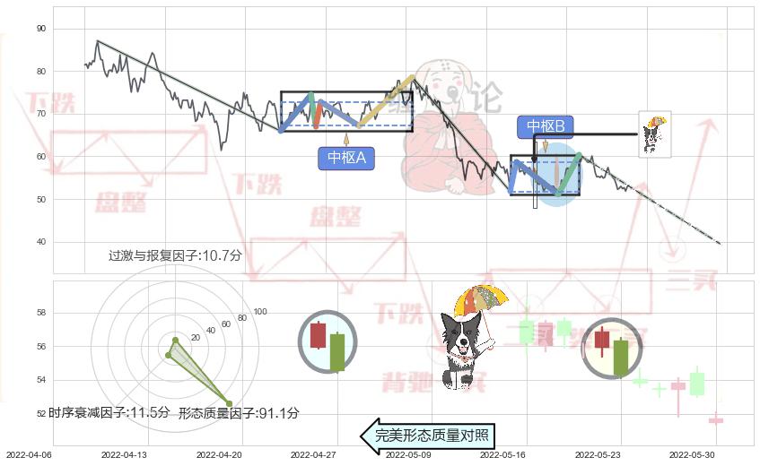 ➢ 射击之星形态 🔜 缠论中枢点破位中枢B支撑下拉 综合量化分数:41.89 【偏空】