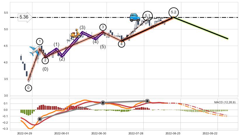 ➣ 5.2: 预测第5浪最终位置(2022-08-19, 5.36)