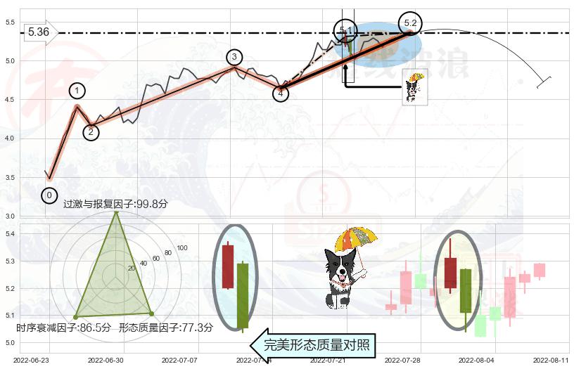 ♘ 阻力价格位5.31,可信任强度69.53%,距离最后交易2022-08-12形成的收盘价格5.25相差 +1.20%