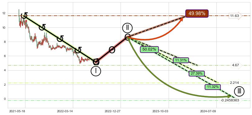 ➣ 波浪理论:猜想止跌 → 上涨 →【拐点】浪5已完成 → 大趋势均值回复