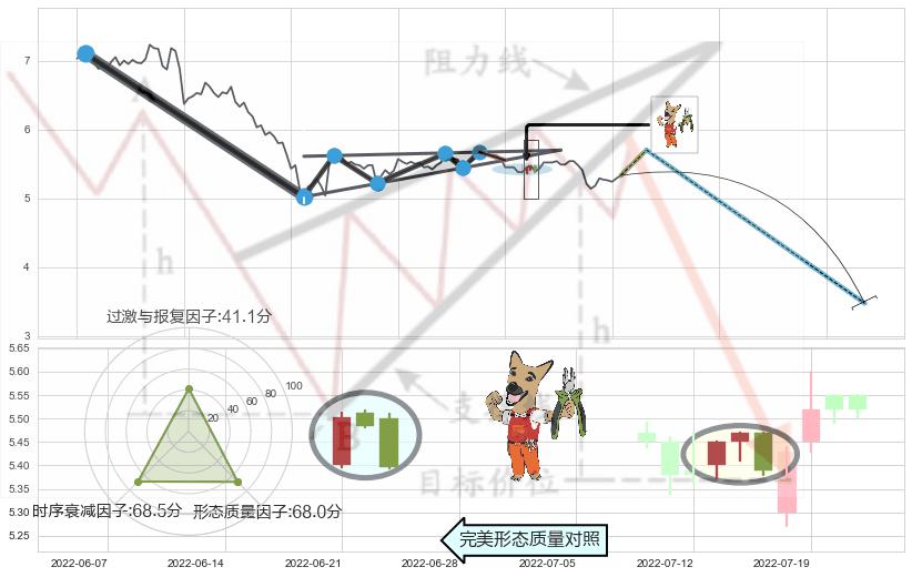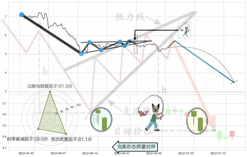 ➢ 🕰 价格走势在2022-07-19至2022-07-20期间形成顶部尽头线(下山虎),残存影响值:-4.97