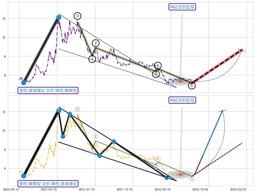 ➢ 波浪理论与降楔型信号事件周期长度级别相同,同周期信号事件