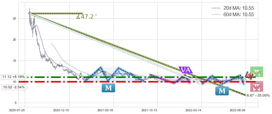 ♘ 阻力价格位11.12,可信任强度85.84%,距离最后交易2022-08-12形成的收盘价格10.28相差 +8.19%