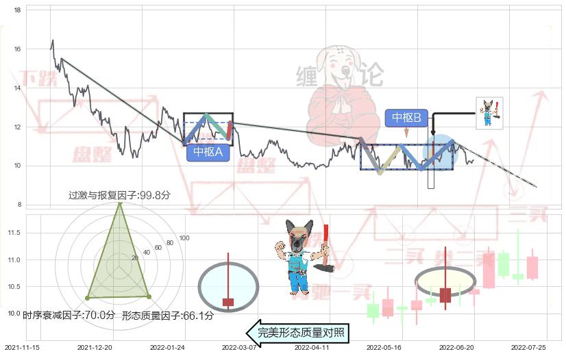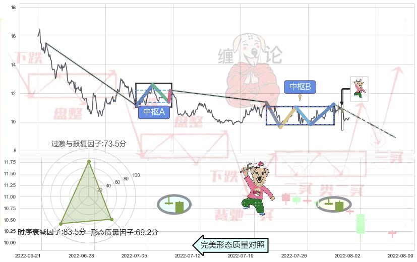 ➢ 下跌镊子线(n形磁铁) 🔜 缠论中枢点破位中枢B支撑下拉 综合量化分数:47.37 【中性】