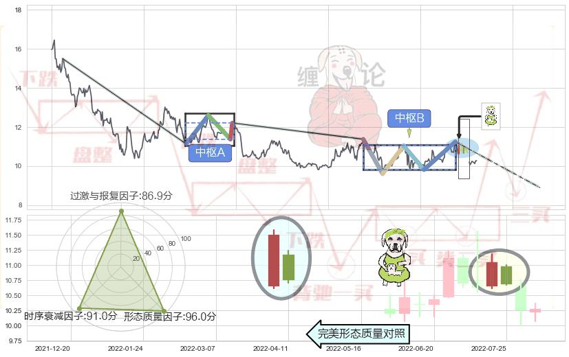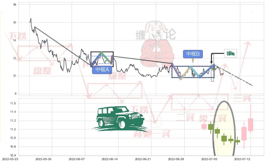 ➢ 【中枢B】:2022-02-14-2022-07-12,中枢由5笔构成,共101交易日, ZG=11.04, ZD=9.82