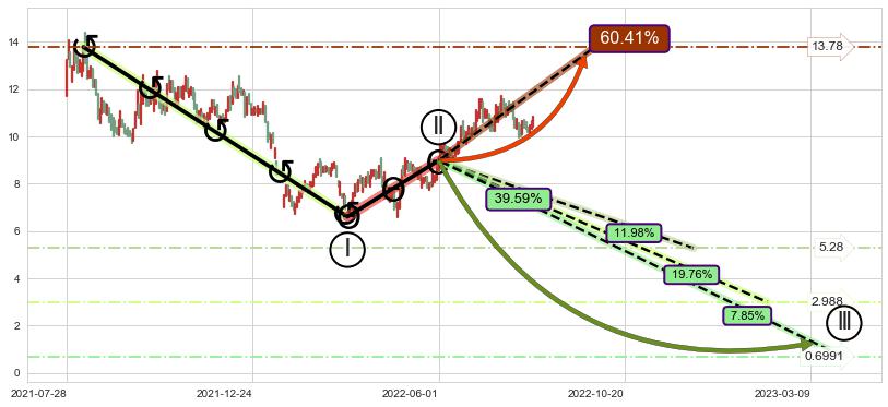 ➢ AI预测: 假定反转如期而至,第❸价格目标位置(2022-10-17, 6.61)