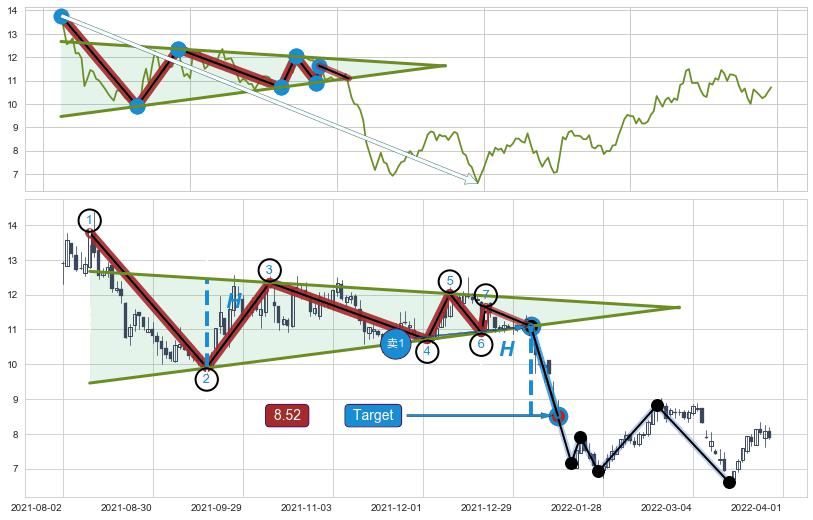 ➣ 【已确认突破】下降【对称】三角形整理 起点:2021-08-10,突破点:2022-01-05,形态共99交易日