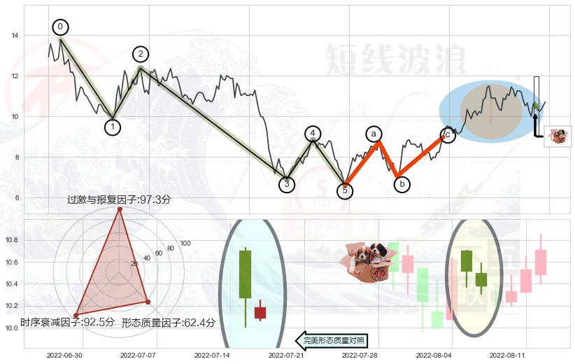 ➢ 🕰 价格走势在2022-08-05至2022-08-08期间形成底部尽头线(上山虎),残存影响值:3.36
