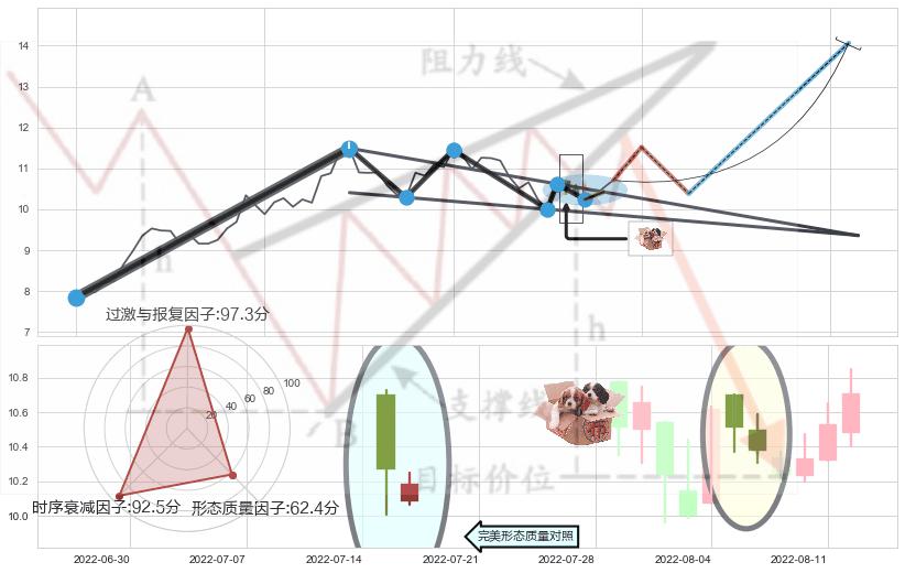 ➢ 【买1】: 激进型 买点 →(2022-08-11: 10.42 )形成突破降🚩楔型【整理】形态