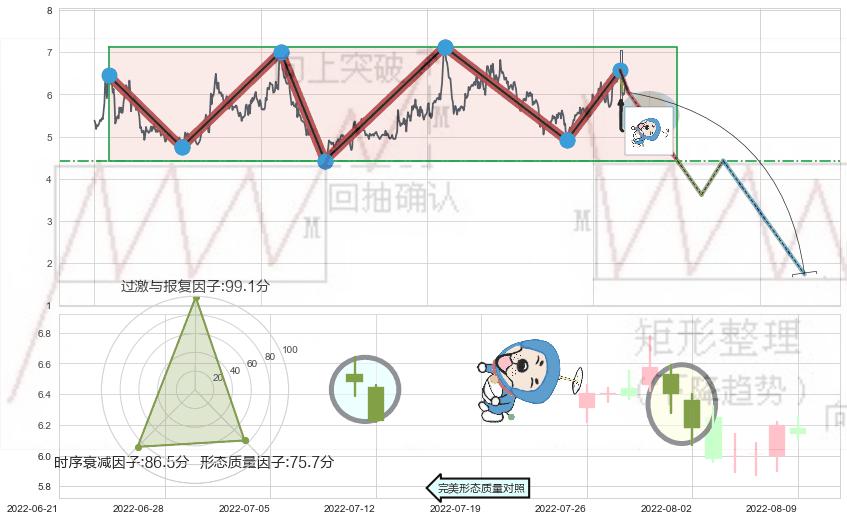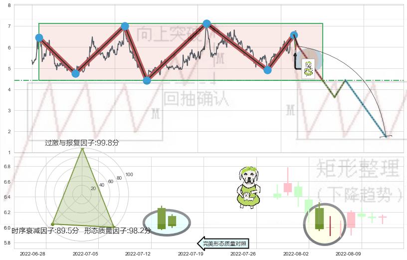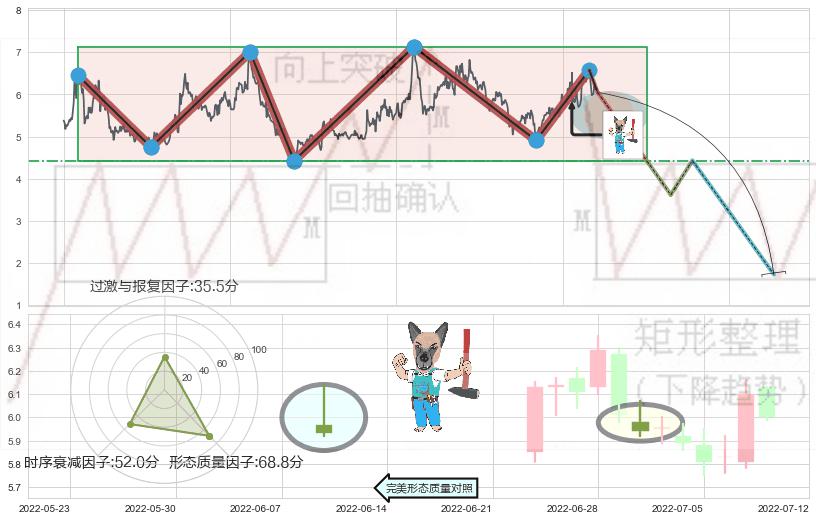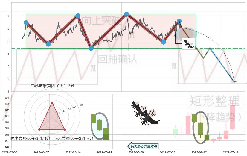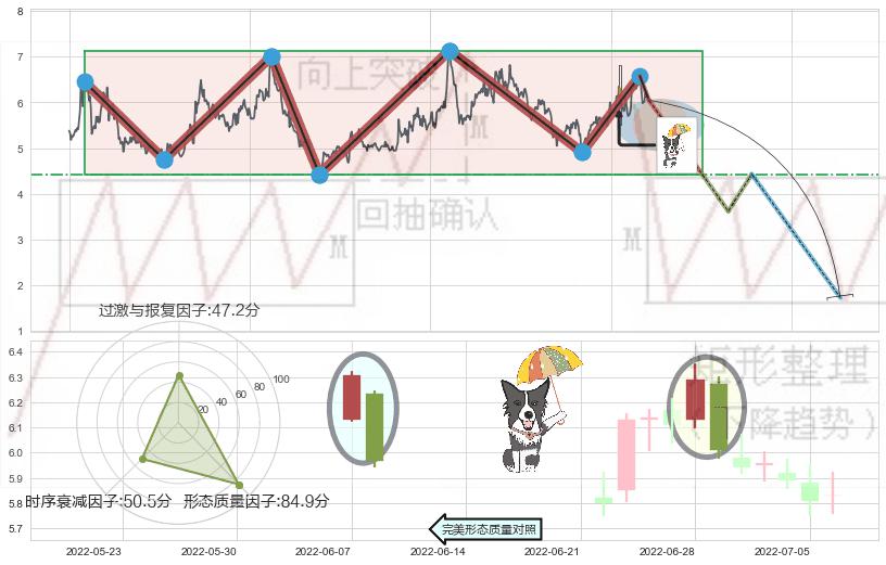 ➢ 下跌镊子线(n形磁铁) 🔜 下跌矩形整理临近支撑猜想转换阻力下跌 综合量化分数:49.61 【中性】