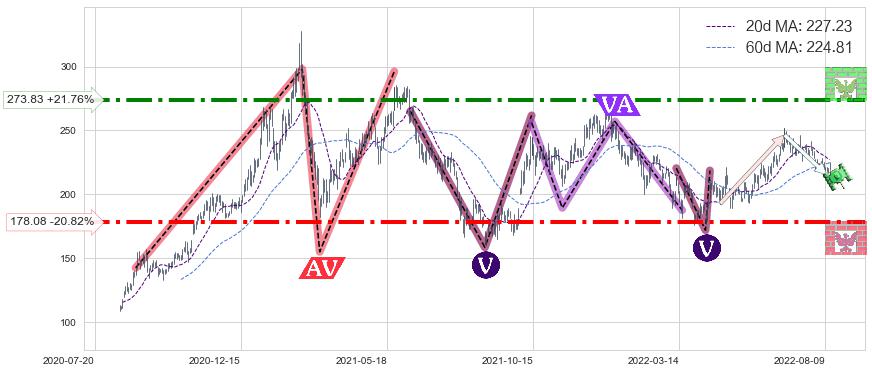 ♘ 阻力价格位273.83,可信任强度73.63%,距离最后交易2022-08-12形成的收盘价格224.90相差 +21.76%