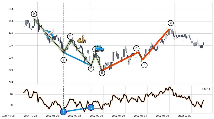 ➣ 波浪理论:猜想达到c点后小回调终止反转上涨 → 上涨 → 【拐点】临近 → 阶段均值回复结束后继续大周期趋势跟踪