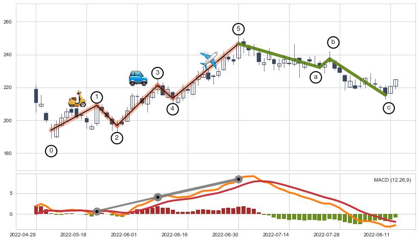 ➣ 第一, 三, 五浪上涨动能逐渐【增强变大】,趋势不断加固