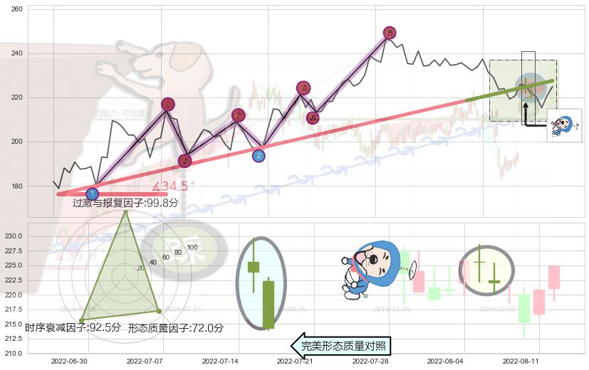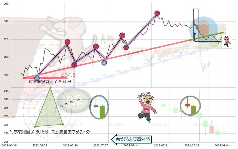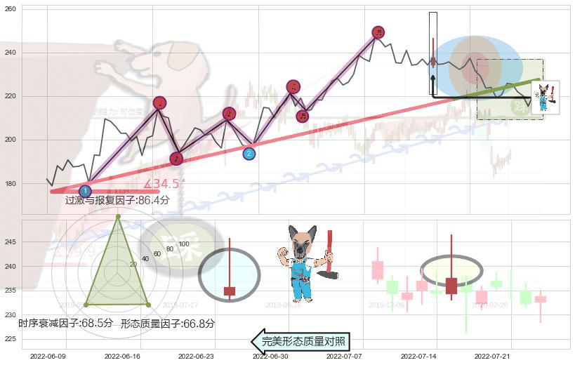 ➣ 2022-03-29-2022-07-21上升趋势存在反转[风险],虽然原上升趋势的支撑位(227.54)已破位,但其支撑效果尚存,原上升趋势角度: 34.5˚