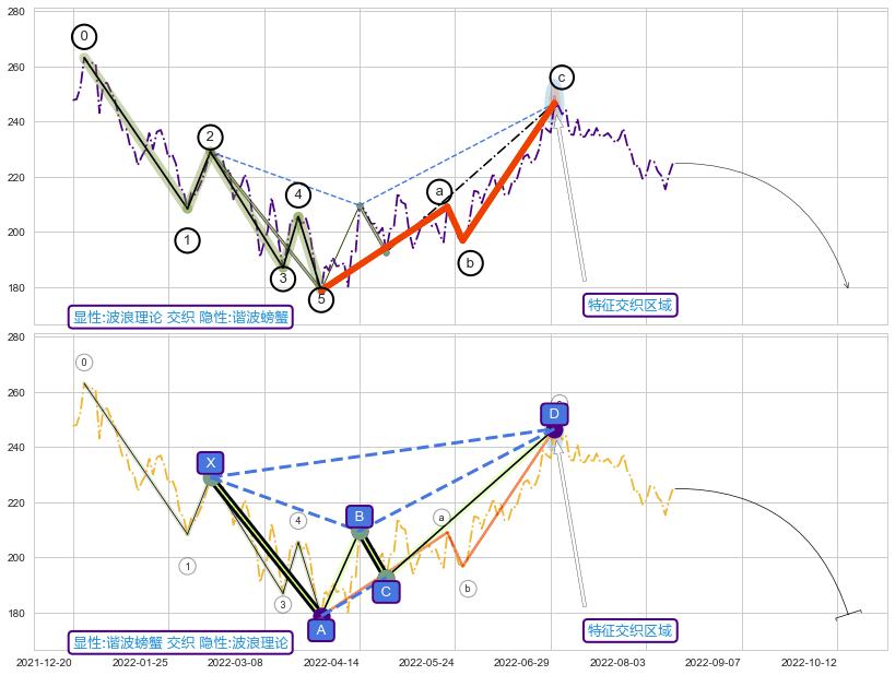 ➢ 波浪理论与谐波螃蟹信号事件周期长度级别相同,同周期信号事件