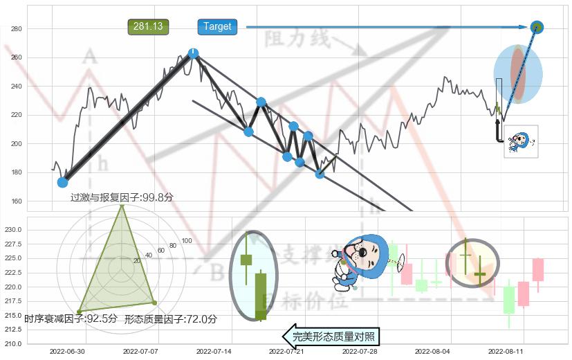 ♘ 阻力价格位254.73,可信任强度59.54%,距离最后交易2022-08-12形成的收盘价格224.90相差 +13.26%