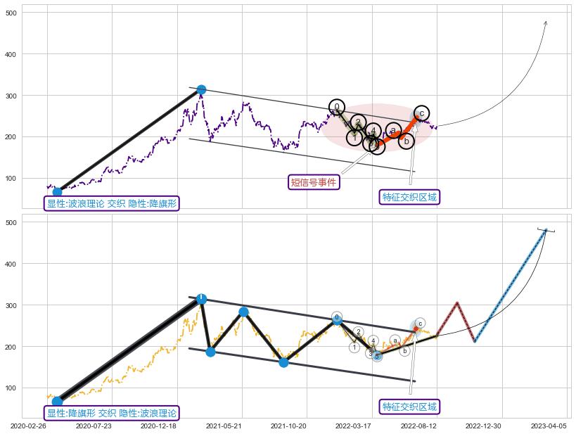 ➢ 波浪理论属【短级别信号事件】降旗形属【长级别信号事件】长短周期组合信号事件, 短长事件长度比12.16%
