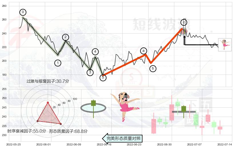 ➣ ['回调abc识别为: 【锯齿型调整浪】 ', '锯齿型:子浪535结构 ⓑ点振幅较小,ⓒ点继续发力远超ⓐ点结束位置']