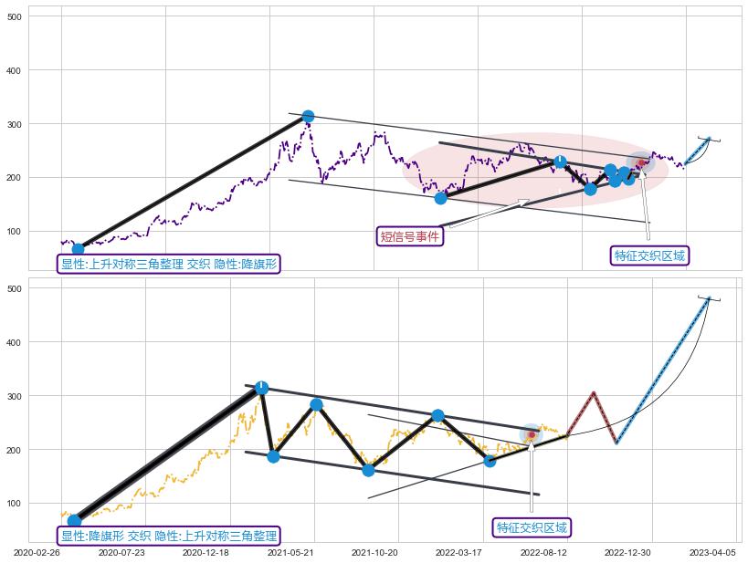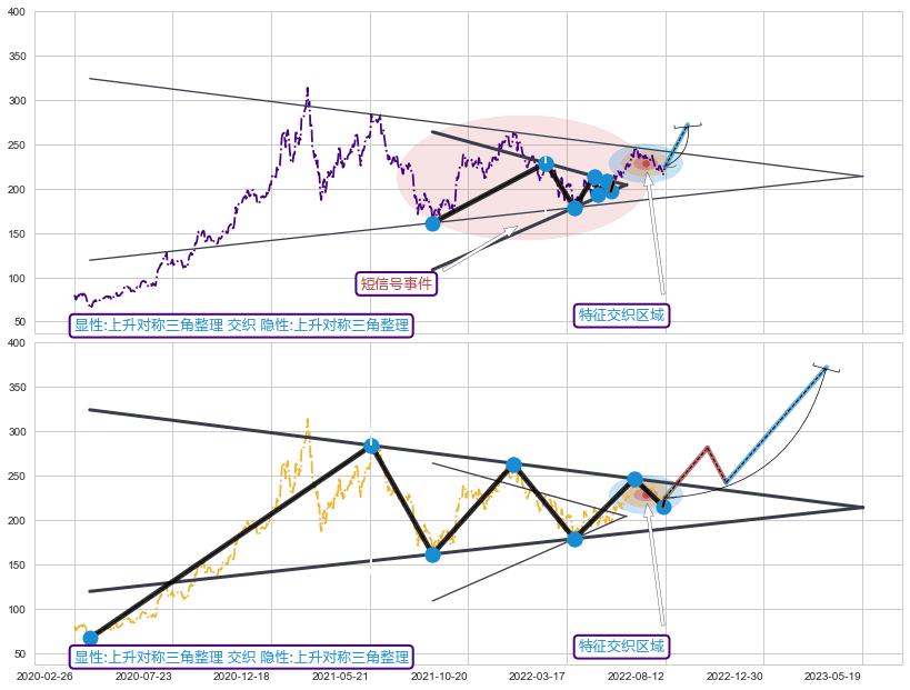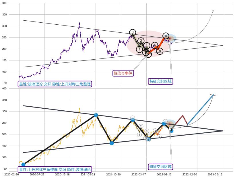 ➢ 上升对称三角整理属【短级别信号事件】上升对称三角整理属【长级别信号事件】长短周期组合信号事件, 短长事件长度比31.62%