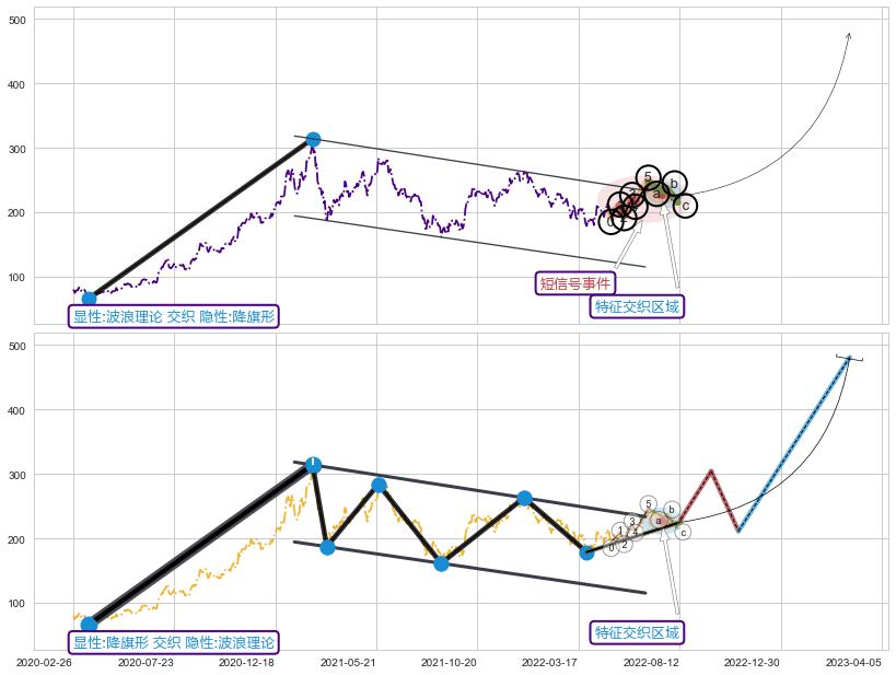 ➢ 波浪理论属【短级别信号事件】降旗形属【长级别信号事件】长短周期组合信号事件, 短长事件长度比22.50%