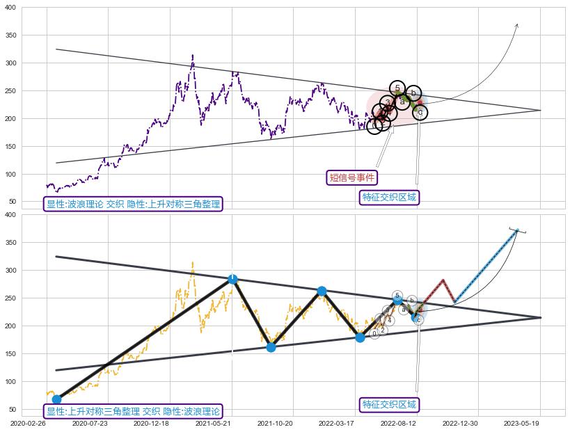 ➢ 波浪理论属【短级别信号事件】上升对称三角整理属【长级别信号事件】长短周期组合信号事件, 短长事件长度比21.20%