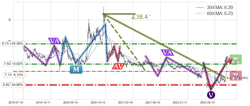 ♘ 支撑价格位7.13,可信任强度50.98%,距离最后交易2022-08-12形成的收盘价格7.76相差 -8.12%