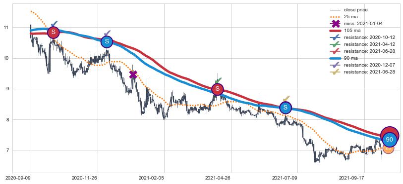 ➣ 25小时均线于(2022-07-18: 6.82)形成【死叉】基于【死叉历史模型】预测死叉后最低波谷价格: 6.23, 死叉后最低价格6.26,尚未达到预测最低波谷价格, 预期继续下跌