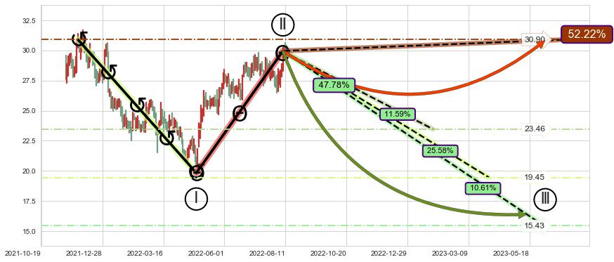 ♘ 支撑价格位23.36,可信任强度97.09%,距离最后交易2022-08-12形成的收盘价格30.10相差 -22.40%