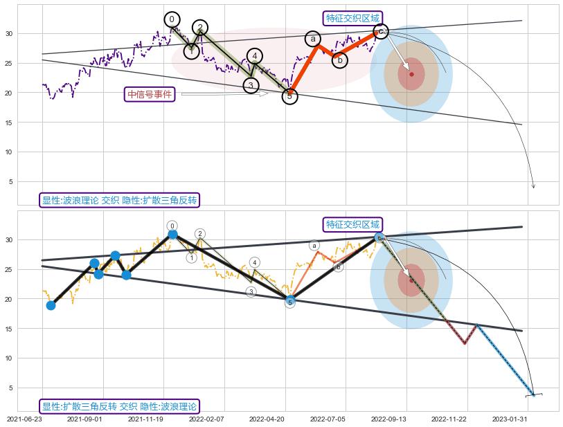 ➢ 波浪理论属【短级别信号事件】扩散三角反转属【长级别信号事件】长短周期组合信号事件, 短长事件长度比27.57%