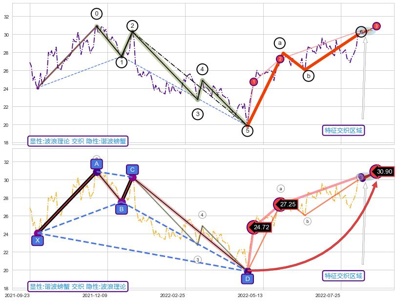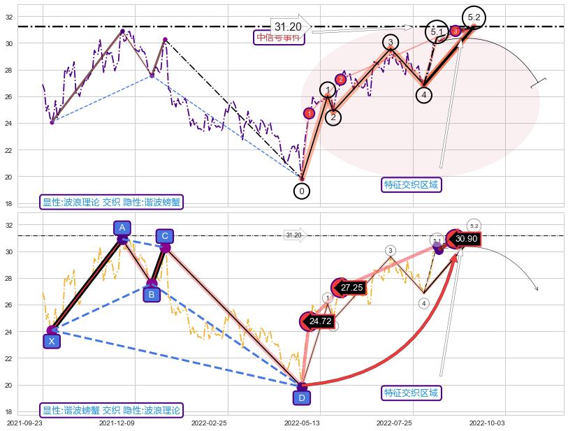 ➢ 波浪理论与谐波螃蟹信号事件周期长度级别相同,同周期信号事件