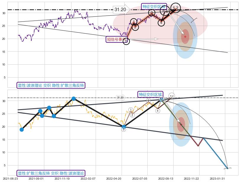 ➢ 循环浪继续向上【最低】位置(2023-03-23, 32.13),匹配聚类样本比例38.58%, 可能性概率11.19%