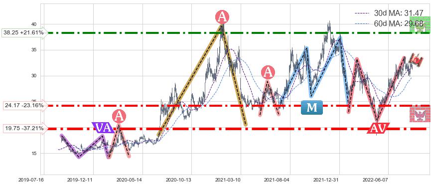 ♘ 阻力价格位38.25,可信任强度82.42%,距离最后交易2022-08-12形成的收盘价格31.45相差 +21.61%