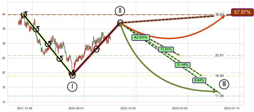 ➣ c.1: 当前c浪回调位置(2022-07-20, 33.66),仍然有回调空间