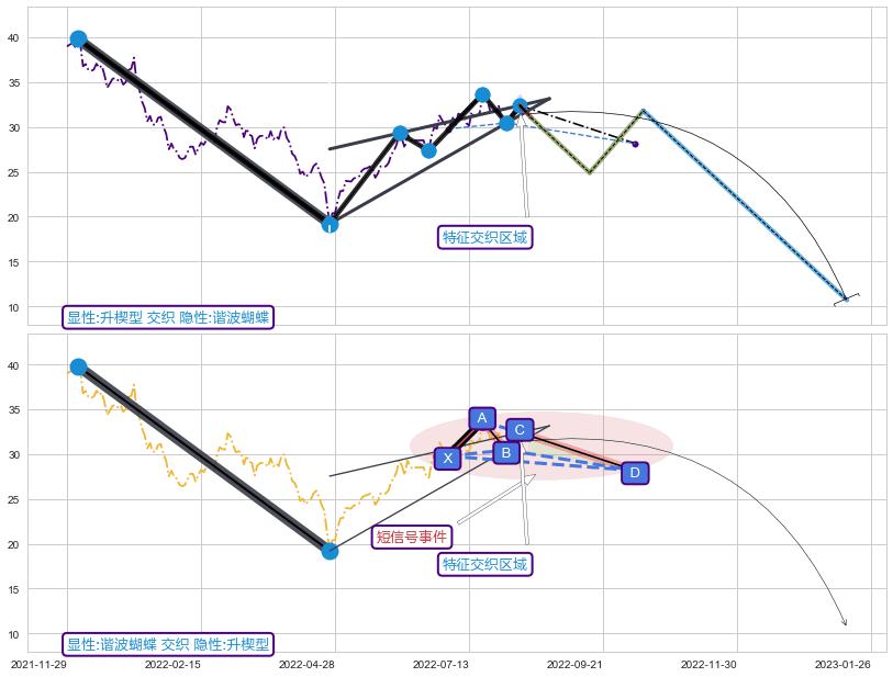➢ 谐波蝴蝶属【短级别信号事件】升楔型属【长级别信号事件】长短周期组合信号事件, 短长事件长度比18.67%