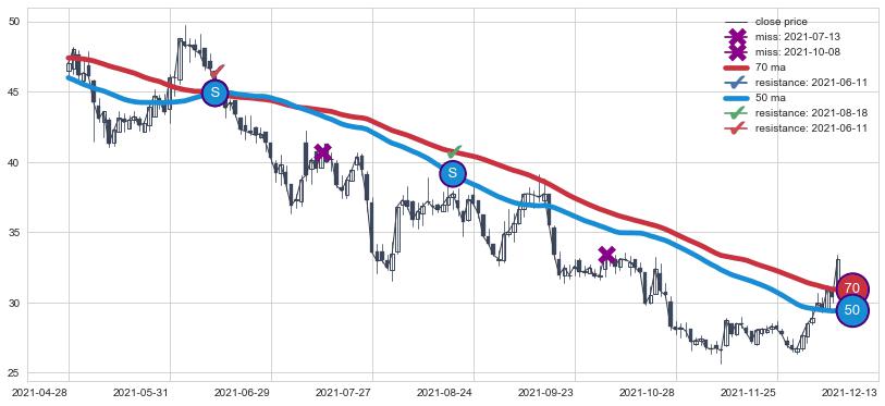 ➣ 21小时均线于(2022-07-13: 32.31)形成【死叉】基于【死叉历史模型】预测死叉后最低波谷价格: 29.50, 死叉后最低价格26.77,已经下跌超出预测最低波谷价格, 预期反弹