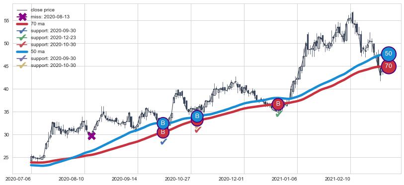 ➢ 最优均线组合共正确确认支撑阻力信号7处,正确确认率 70.00%