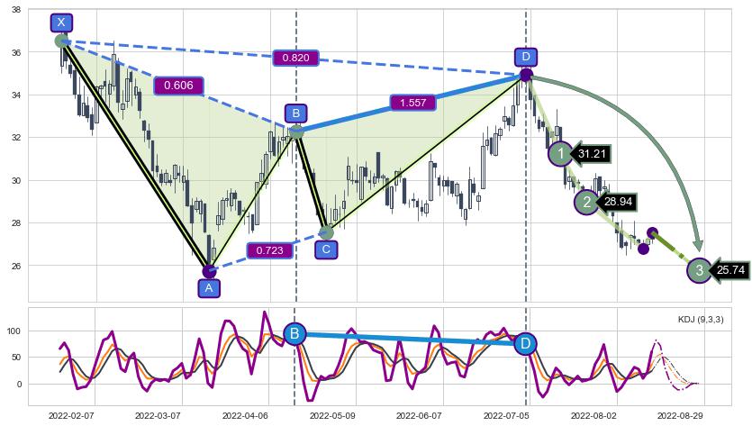 ➣ 2022-07-22到达第❷价格目标位置28.94