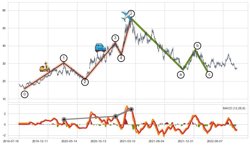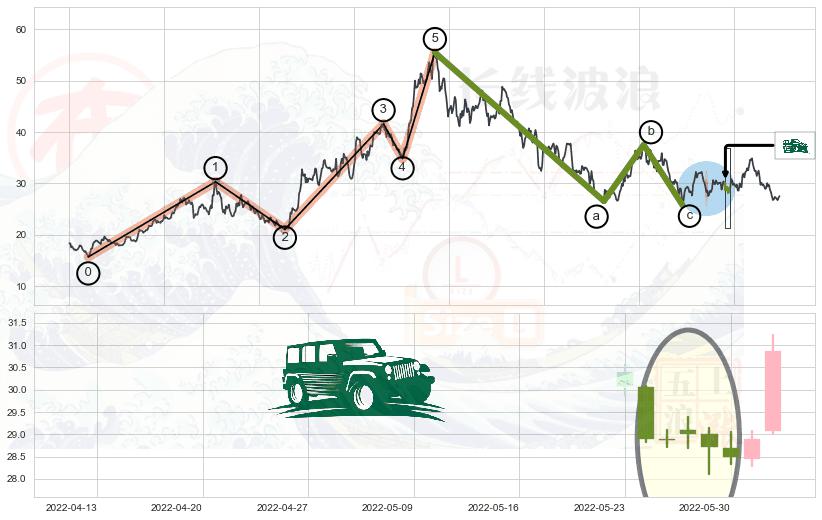 ➣ 波浪理论:猜想达到c点后小回调终止反转上涨 → 上涨 → 【拐点】临近 → 阶段均值回复结束后继续大周期趋势跟踪