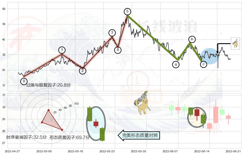 ➢ 趋势线阻力位已击穿上涨 🔜 波浪理论c点回调终止反转上涨 综合量化分数:52.93 【中性】